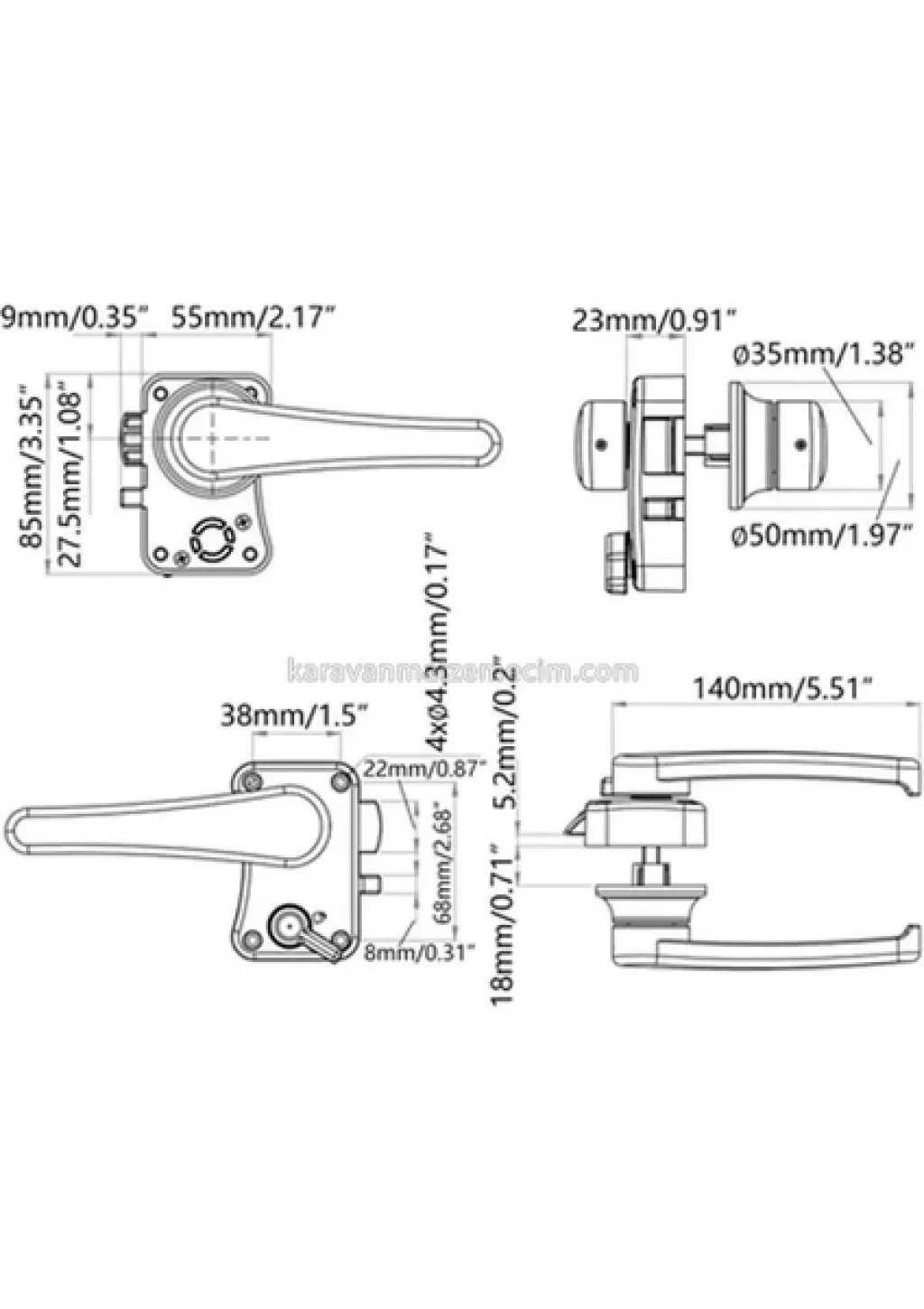 Karavan ve teknelerde en çok tercih edilen profesyonel banyo kapısı kilit sistemidir. Dışarıdan ve içeriden olmak üzere çift yönlü açılabilir kolludur. Aşınmaya ve solmaya karşı dayanıklıdır.